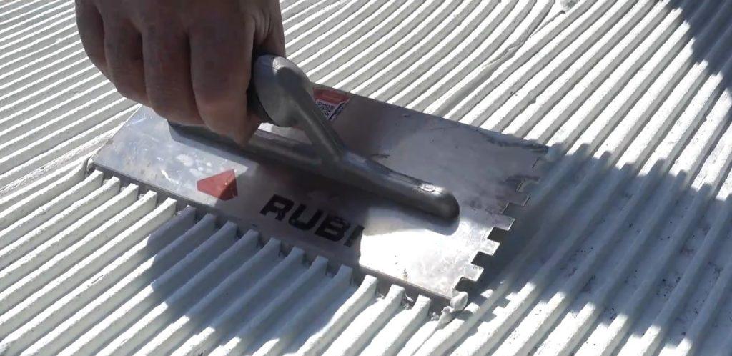 Voor een goede hechting moet minimaal 85% van het oppervlak onder de tegel in een droge zone (de meeste vloeren) bedekt worden. In natte ruimtes (badkamer, douches) moet 95% ingesmeerd worden. Kies daarom voor een lijmkam die deze dekking onder de tegel levert.