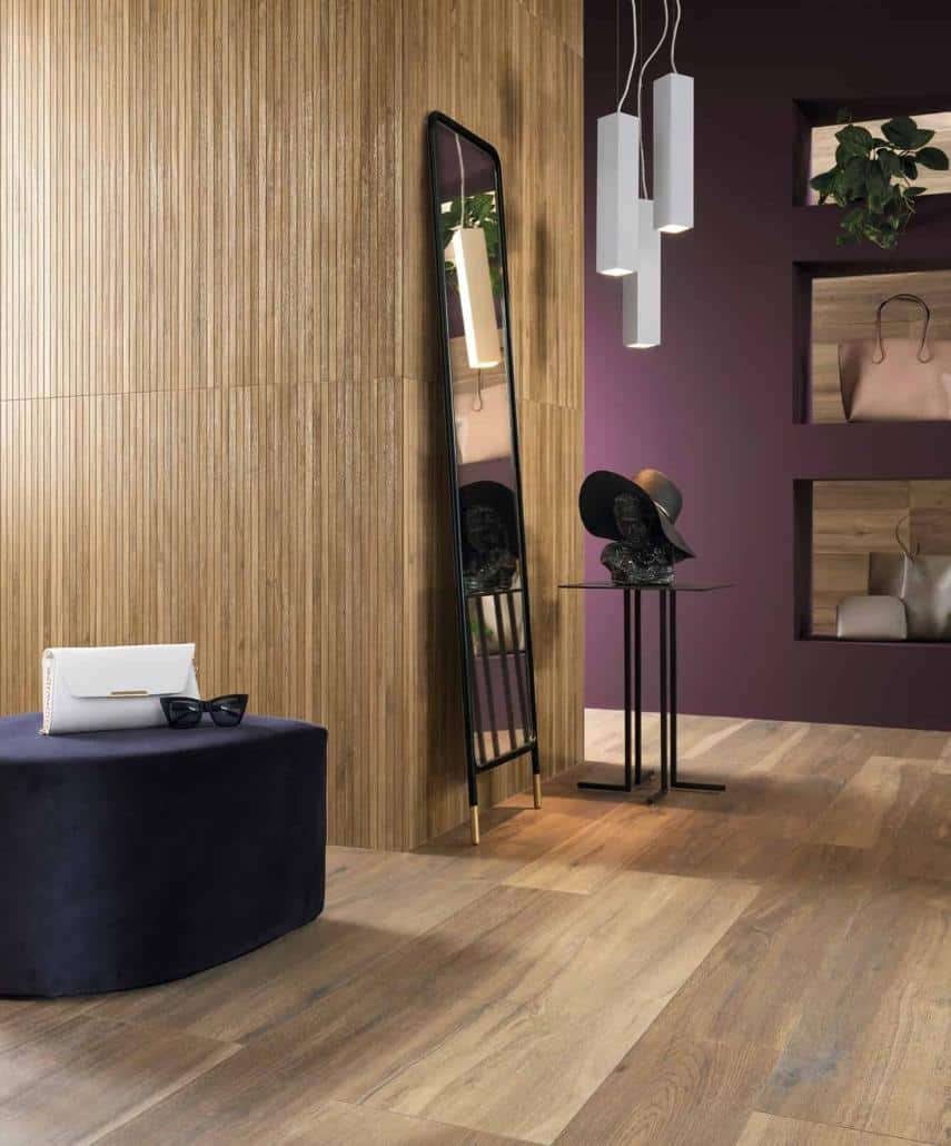 Sichenia Silvis houtlook vloertegels zijn mat naturale uitgevoerd en onderling verschillend genuanceerd waardoor de look en feel van “echt” hout ontstaat met alle voordelen van een keramische vloertegel. Sichenia Silvis tegels zijn leverbaar in het formaat 30×120 in de kleuren Acero/Rovere/Noce/Mogano en Larice. De houtlook tegels zijn gerectificeerd (zijkanten haaks geslepen) voor het verwerken met een minimale voeg vanaf 2 mm.
